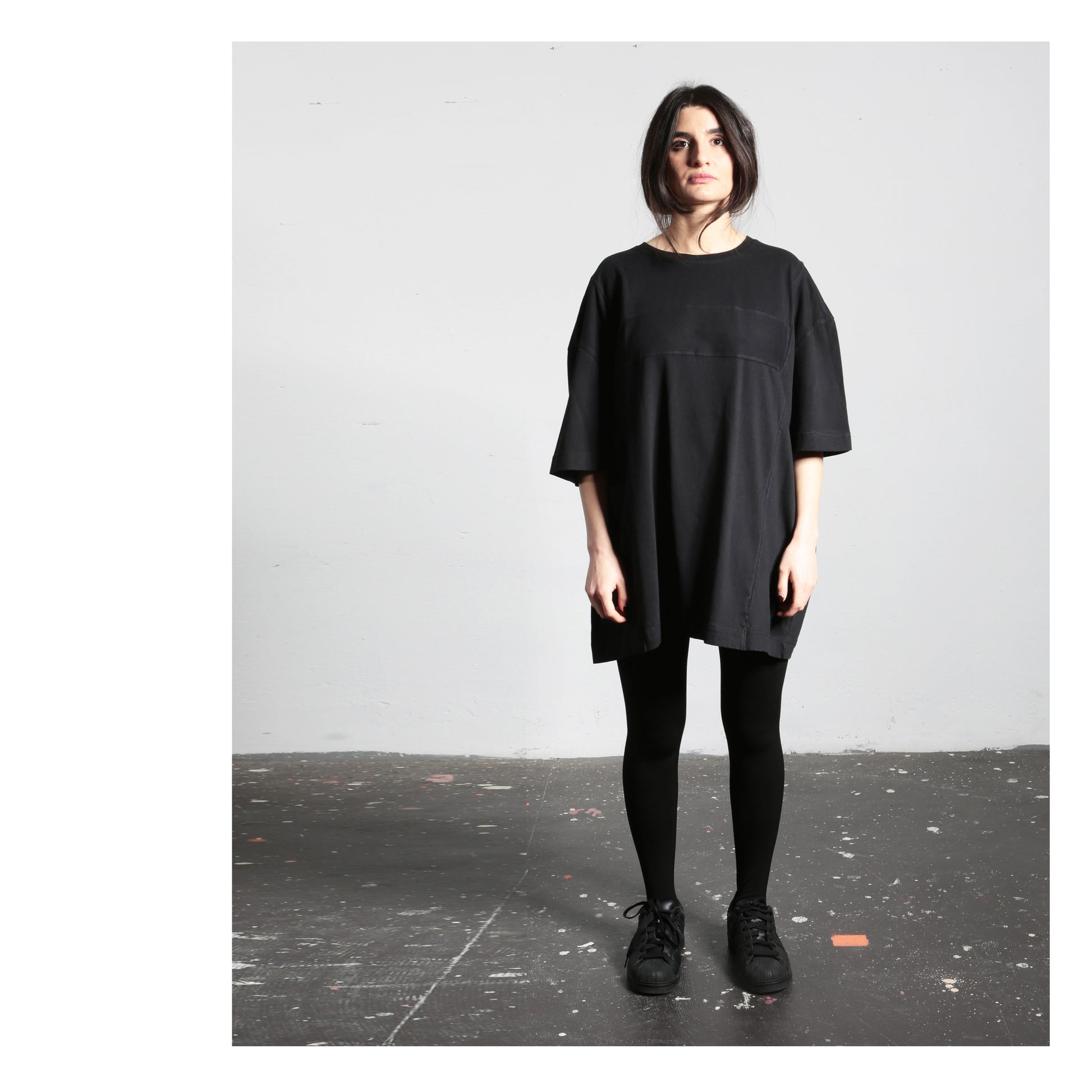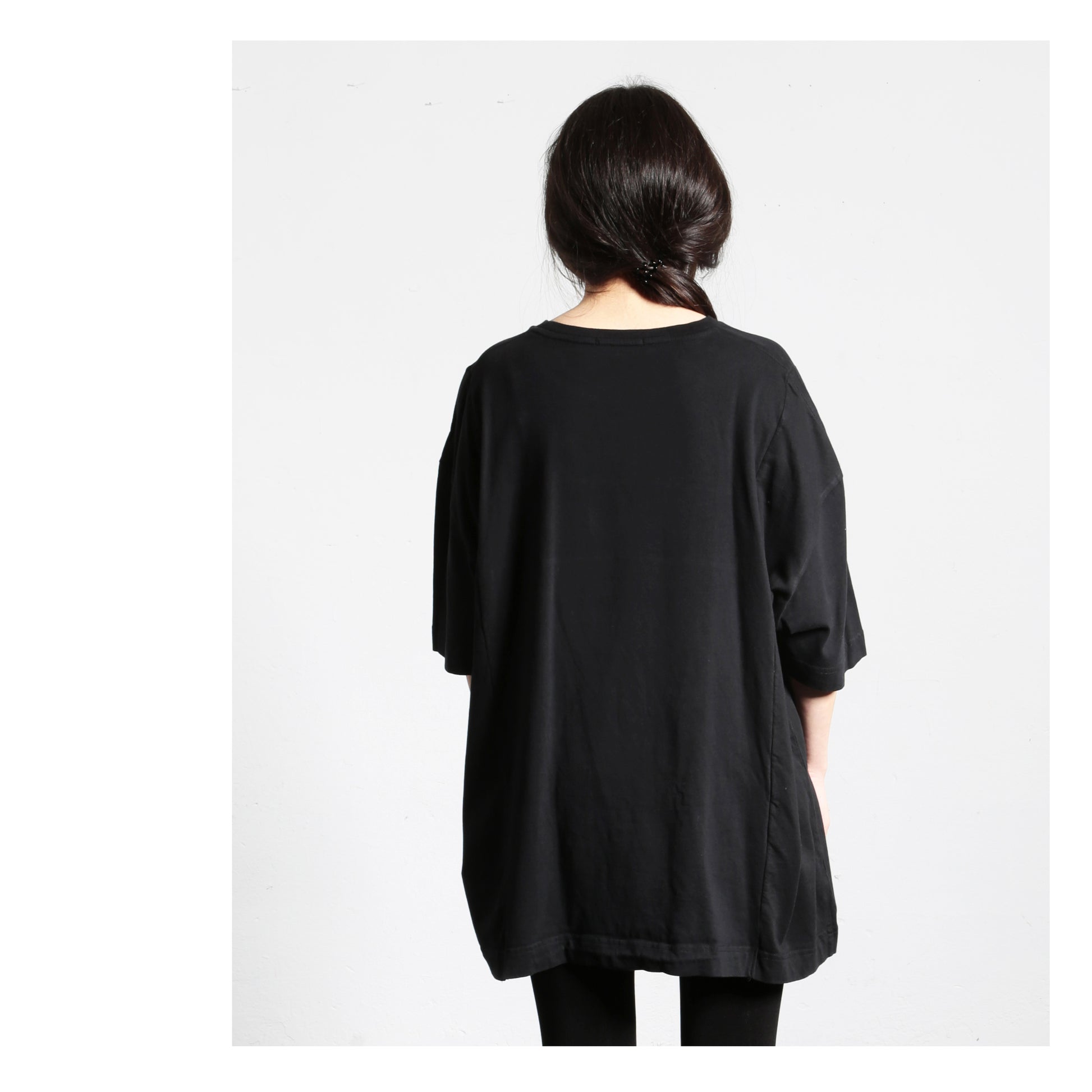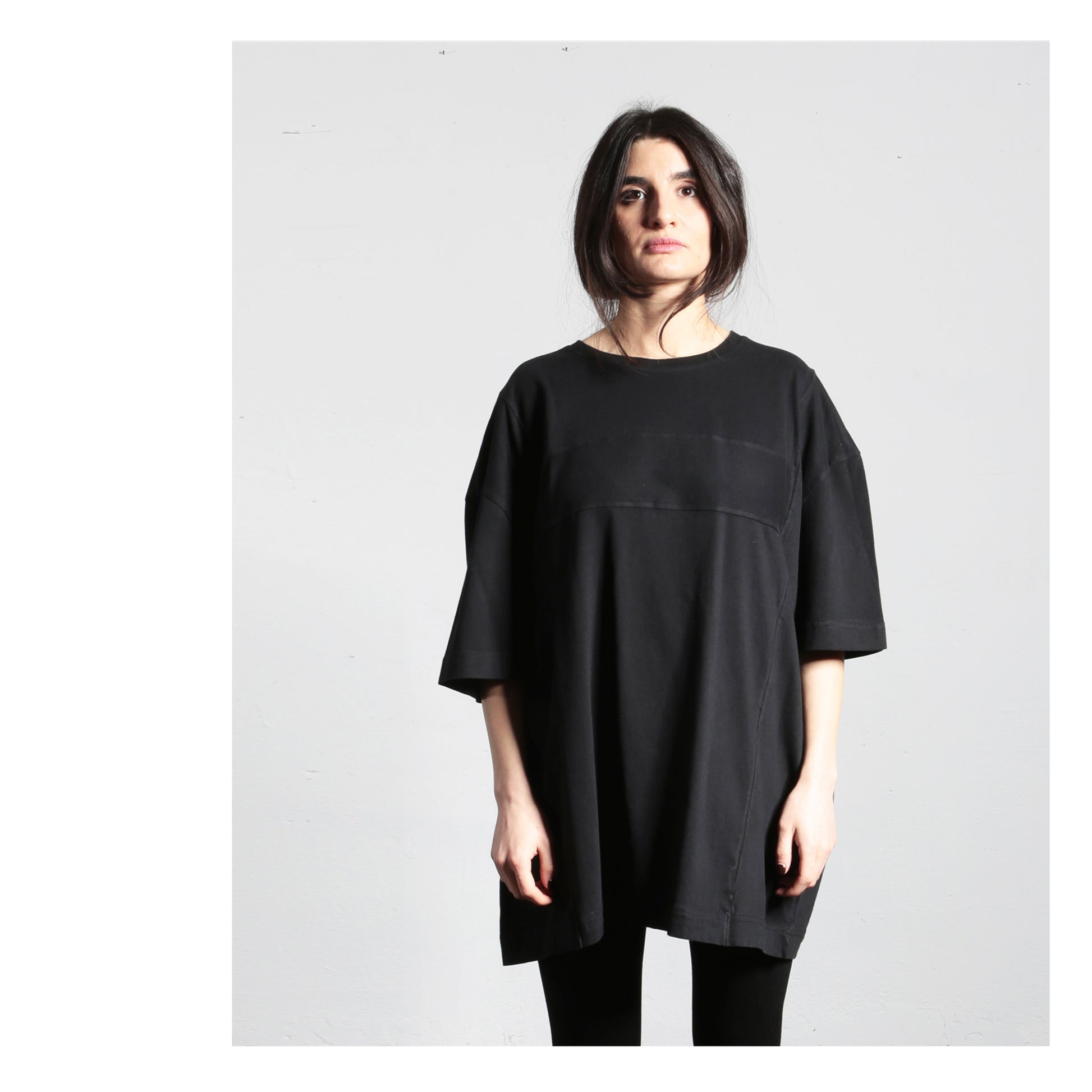 Oversized T-shirt that can be worn by everyone, made from super soft, velvety combed cotton jersey. The look is contemporary, dense and deliberately minimalist with a smooth surface. It has character. As if it were made from a single piece.